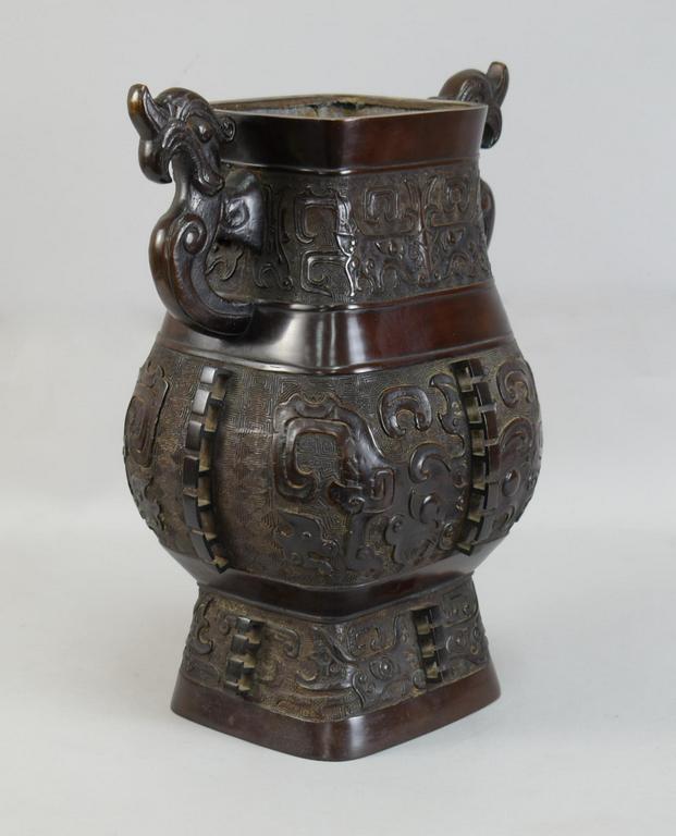 Lot 122: Chinese Bronze 2-Handled Vessel With Bird Figural Handles.