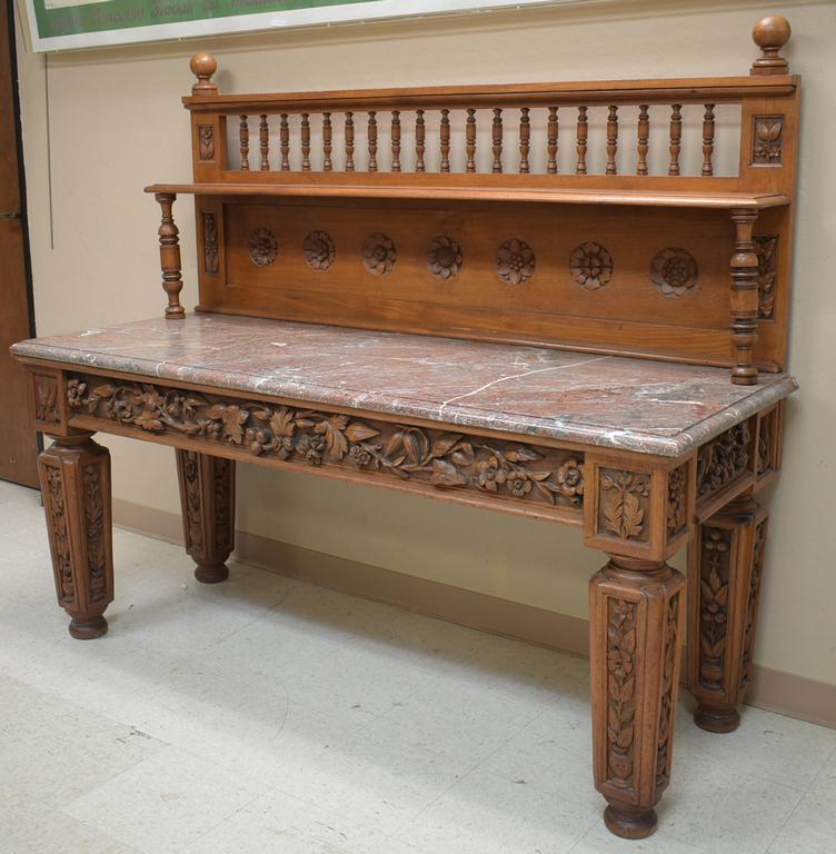 Lot 126: Antique French Carved Oak And Marble Top Console.
