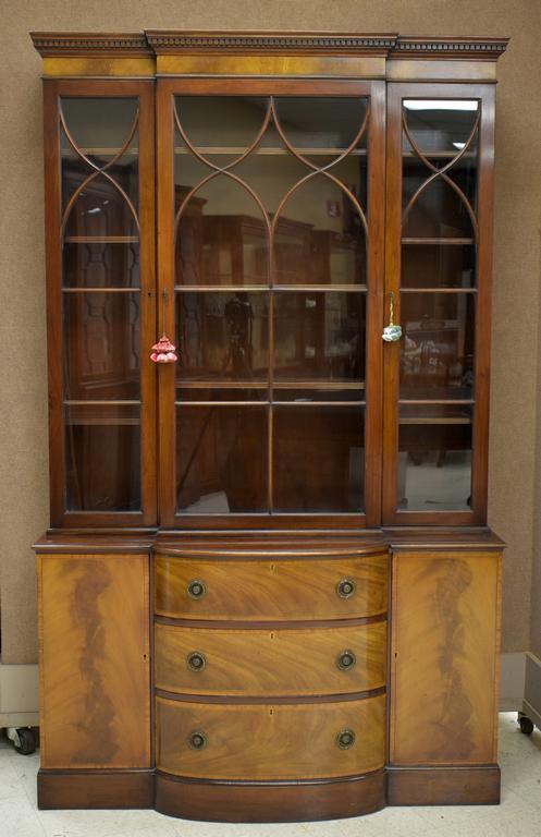 Lot 132: Georgian Style Walnut 3-Drawer Breakfront Cabinet With