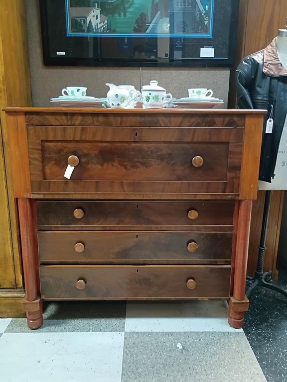Lot 460: Flame Mahogany 3-Drawer Drop Front Chest.