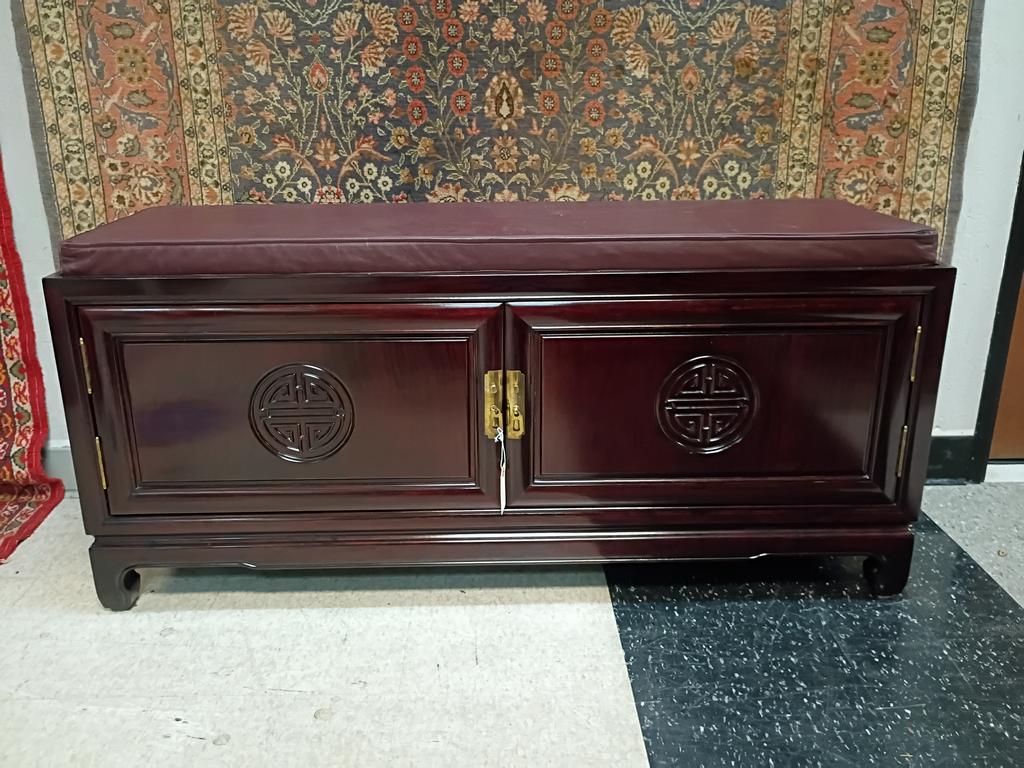 Lot 464: Oriental Rosewood 2-Door Cabinet / Bench With Seat.