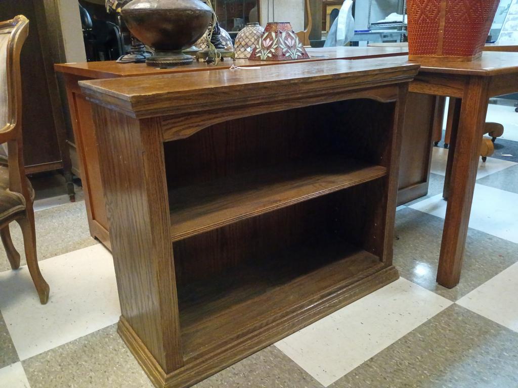 Lot 471: Oak 2-Shelf Low Bookcase.