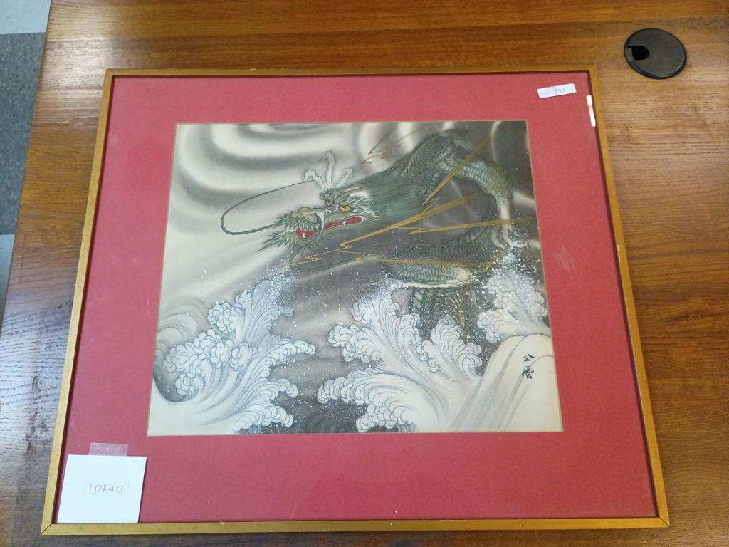 Lot 473: Japanese Style Painting Depicting A Dragon.