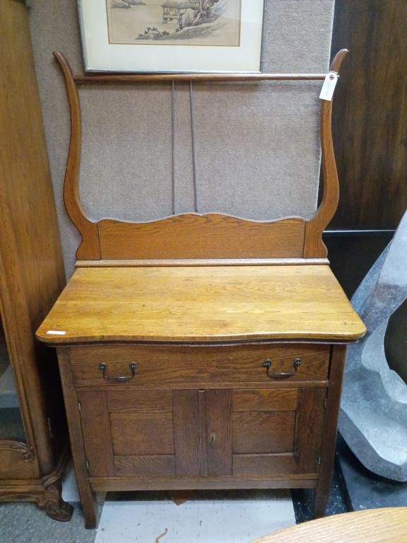 Lot 482: Early 20th C. Oak Single Door, 2-Drawer Washstand With Towel Rack.