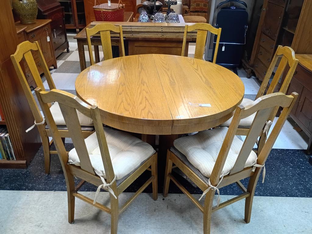 Lot 486: Oak Circular Dining Table With 6 Chairs.