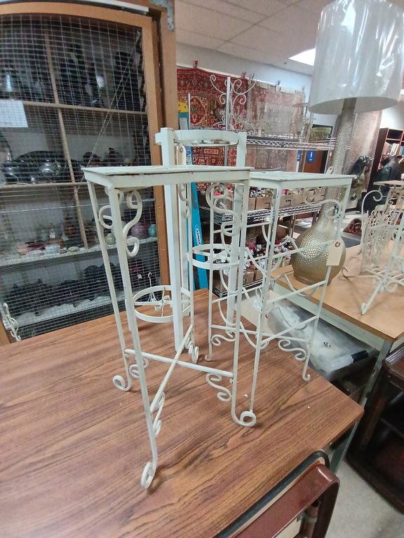 Lot 504: (3) White Painted Metal Plant Stands.