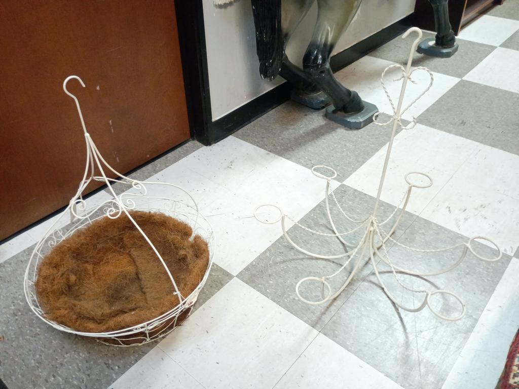 Lot 505: (2) White Painted Metal Hanging Plant Stands.