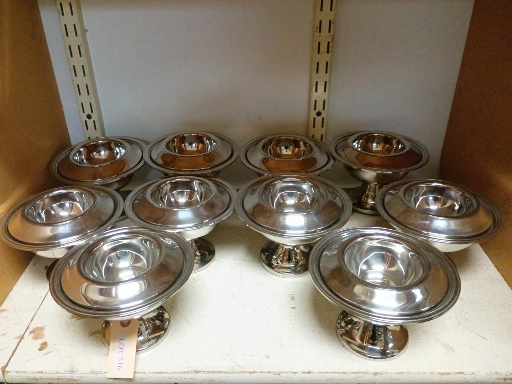 Lot 516: (10) Reed & Barton Steel Caviar Dishes.