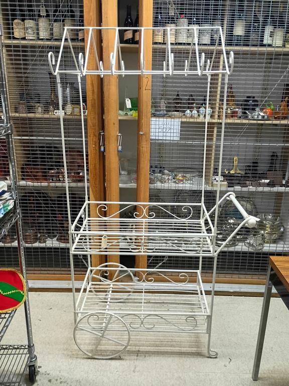 Lot 519: White Painted Metal 2-Shelf Plant Stand. 6 Ft. Tall.