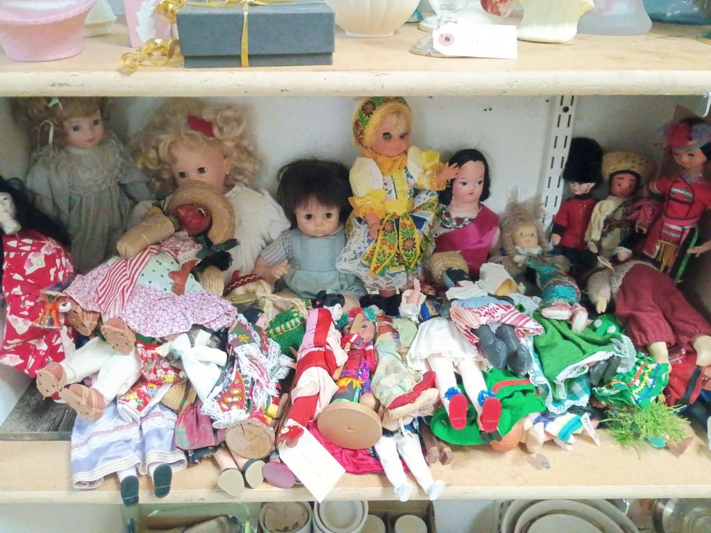 Lot 517: (2) Shelves Of Dolls Incl. Mickey Mouse, Troll.