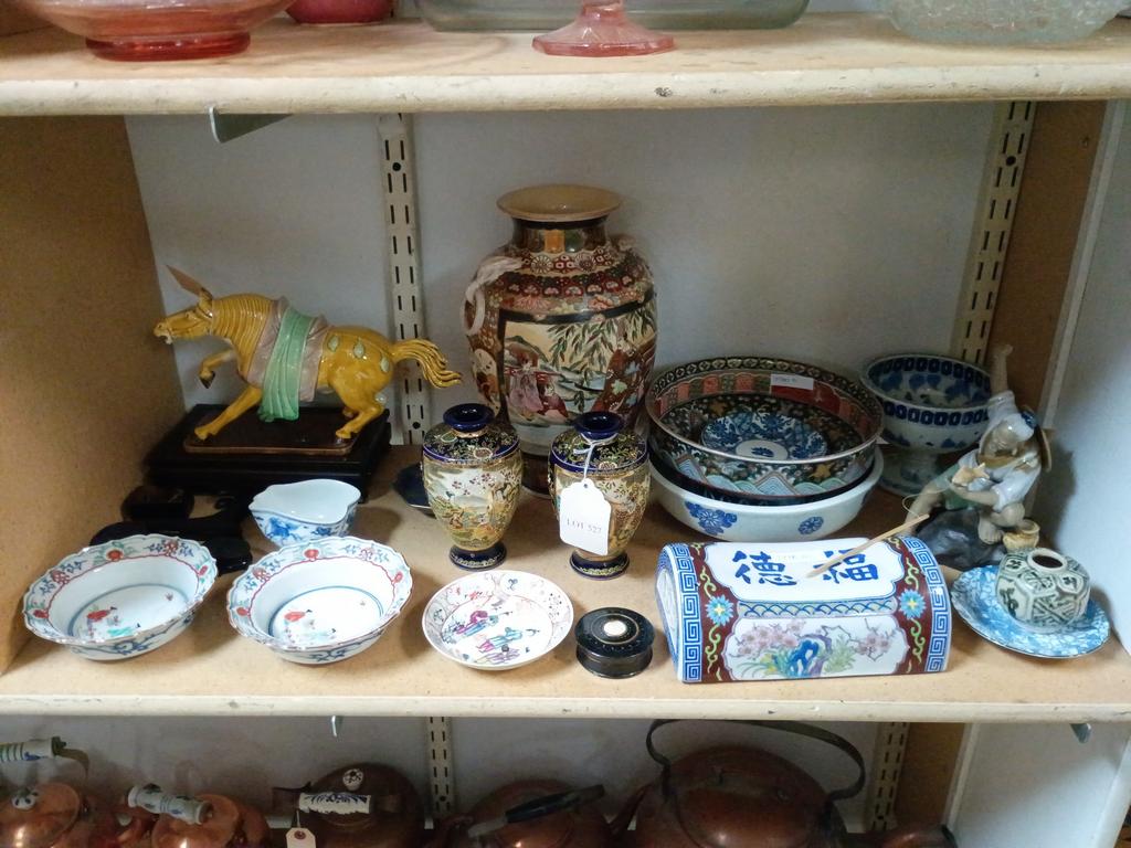 Lot 527: Group Of Asian Porcelain Items Incl. Vases, Figures, Dishes.