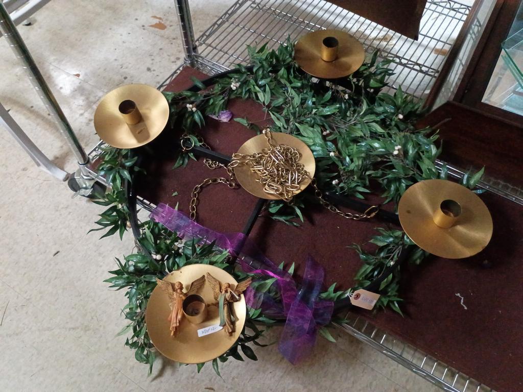 Lot 535: Shelf Of Metal Candelabra.