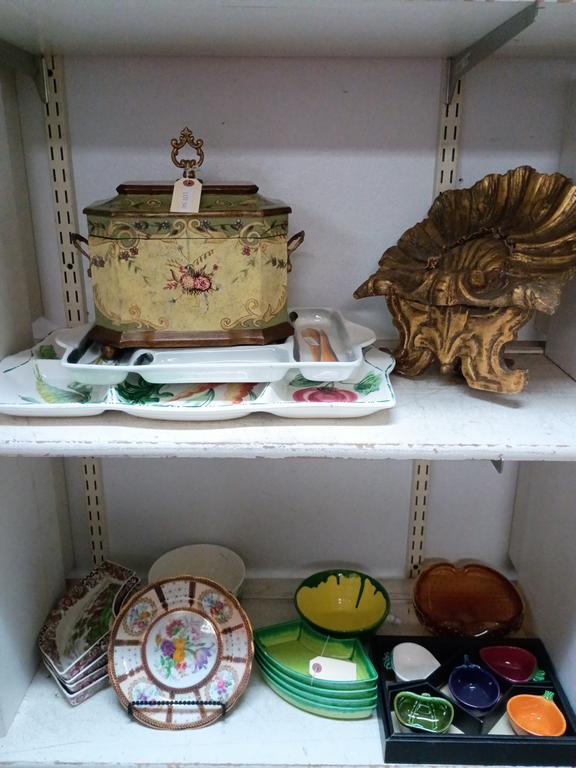 Lot 541: (2) Shelves Of Porcelain Serving Trays And Decorative Items.