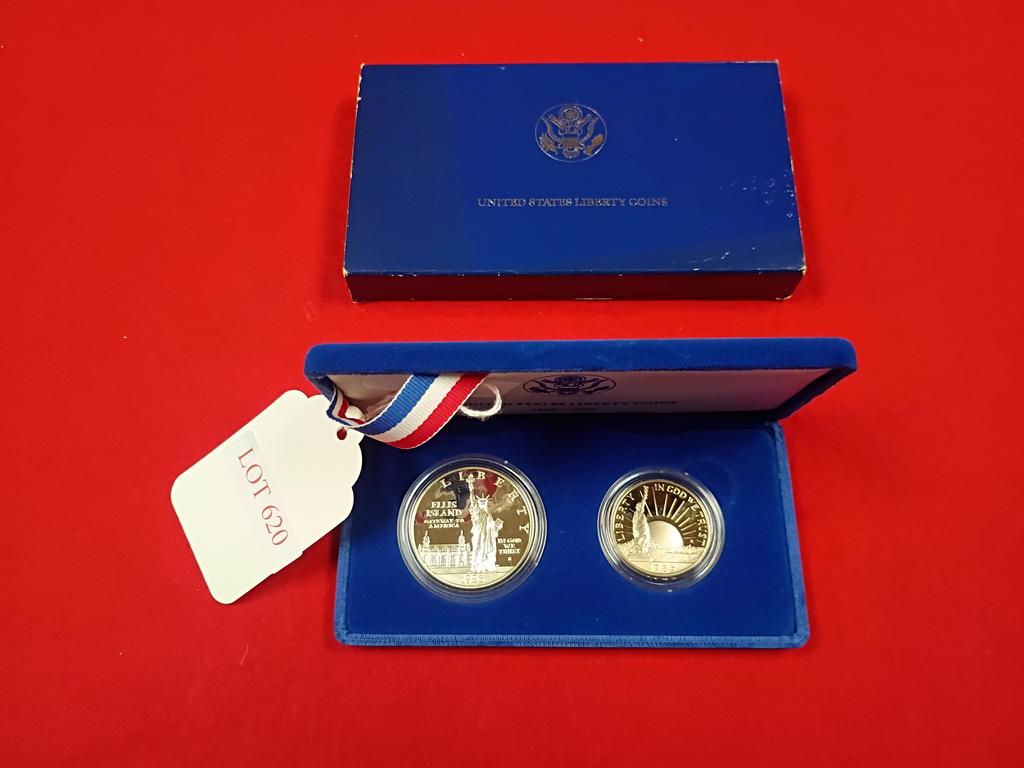 Lot 620: 1986-S Statue Of Liberty 2-Coin Set.