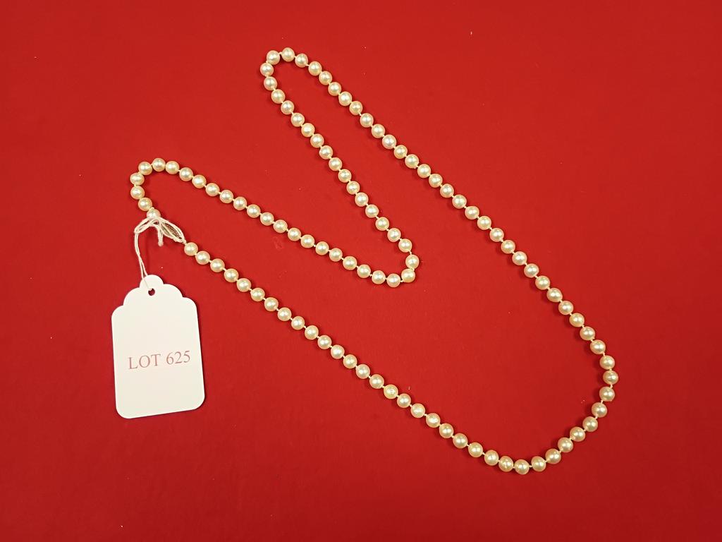 Lot 625: Pearl Necklace With 14k White Gold Clasp. 36" Long.
