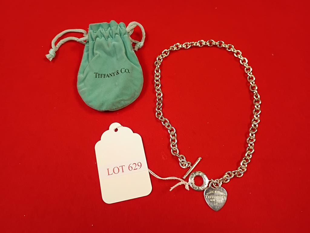 Lot 629: Tiffany & Co. Sterling Silver Necklace With Heart Pendant.