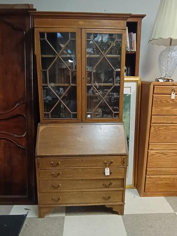Lot 638: Inlaid Mahogany 4-Drawer Drop Front Secretary Bookcase.