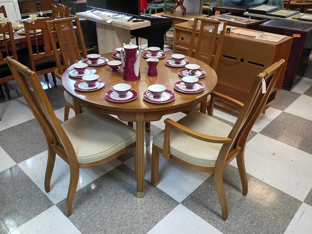 Lot 641: Hickory Furniture Dining Table With 2 Leaves, Pads And 4 Chairs.
