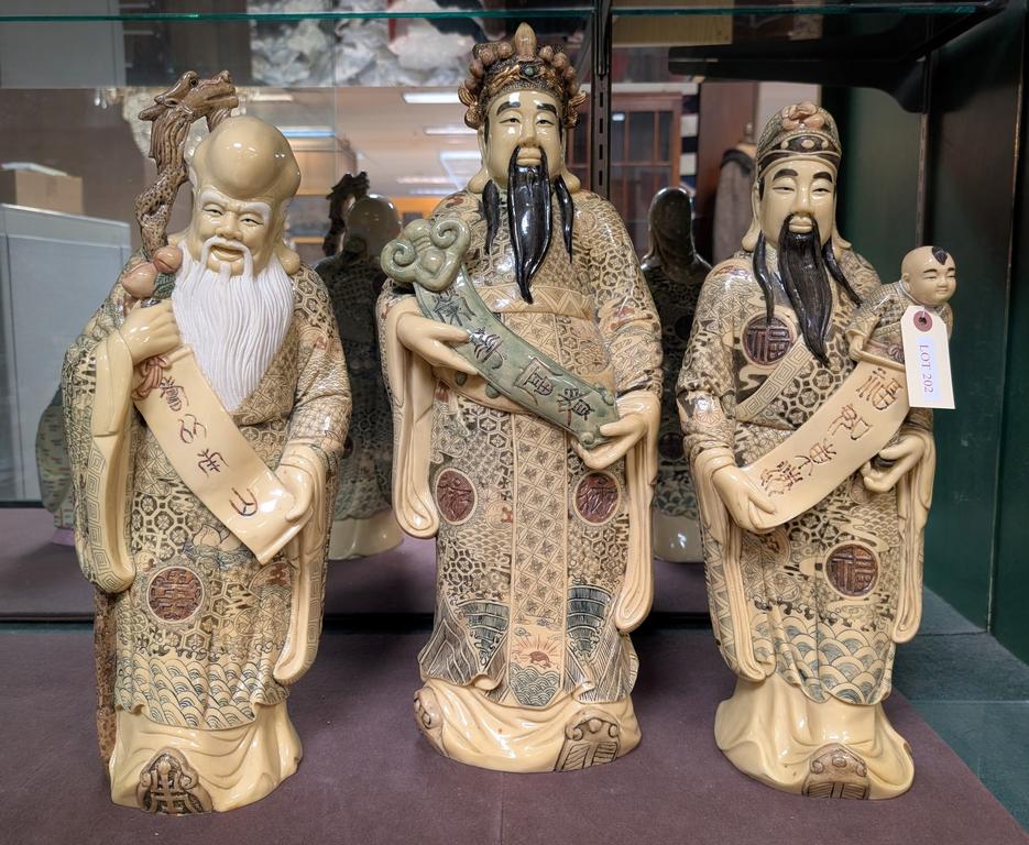 Lot 202: (3) Chinese Carved Resin Figures Of Star Gods. Fu, Lu And Shou.