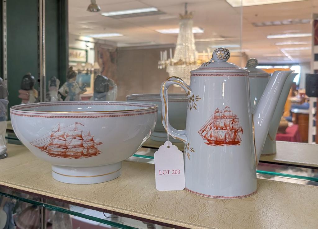 Lot 203: Spode Trade Winds Porcelain Fruit Bowl & Coffee Pot.