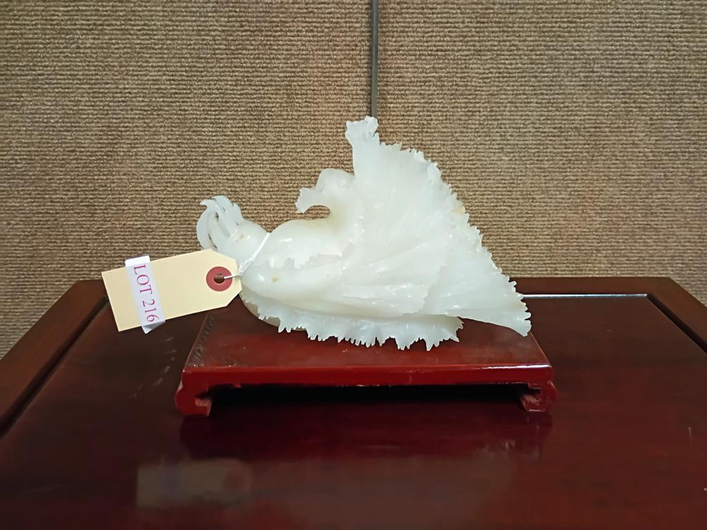 Lot 216: Chinese White Jade Cabbage Sculpture On Stand.