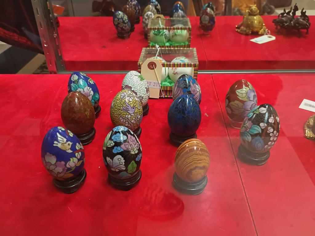 Lot 217: Group Of (16) Oriental Decorative Eggs, Mostly Cloisonne.