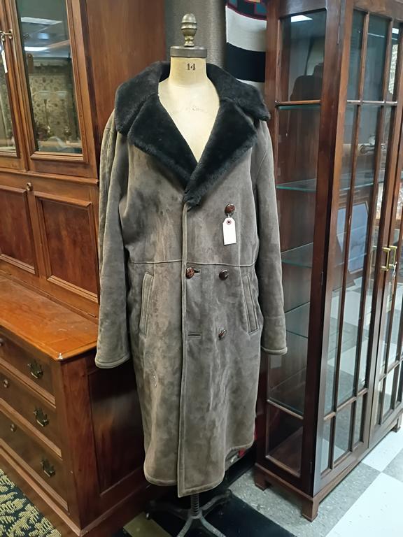 Lot 220: Hirmer Munchen Brown Suede Overcoat With Faux Fur Lining.