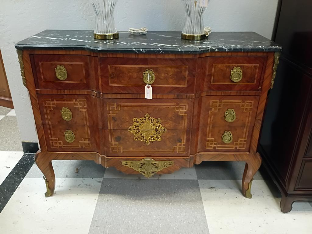 Lot 223: Louis XVI Style 3-Drawer Chest With Black Marble Top.
