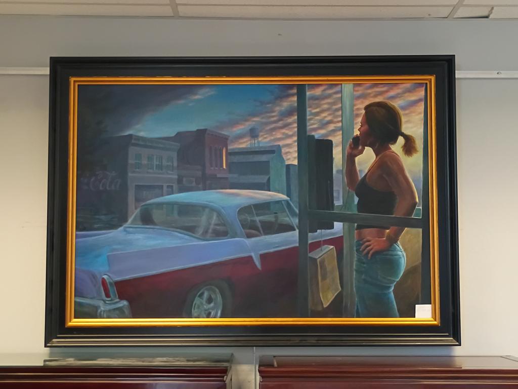 Lot 225: Mark Keller Oil On Canvas, Woman In A Phone Booth.