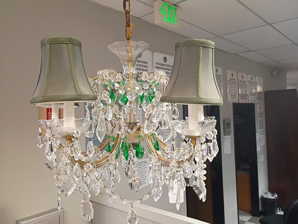 Lot 238: 1940s Crystal 5-Light Chandelier With Drop Prisms And Swag Garlands.