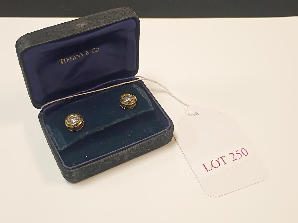 Lot 250: Pair Of Yellow Gold And Diamond Post Earrings.