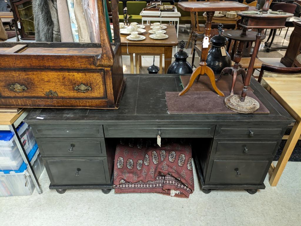 Lot 974: 11-Drawer Carved Wood Double Pedestal Desk.
