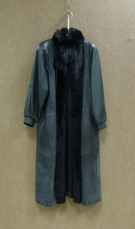 Lot 177: Nina Ricci Black Leather Coat with Fox Fur Collar.