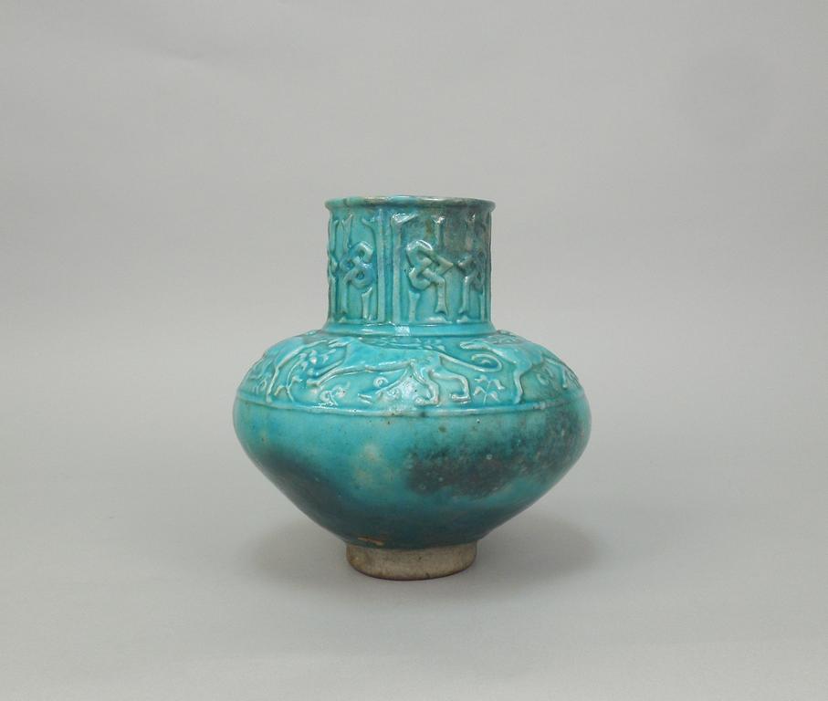 Lot 223: 19th C. Middle Eastern Turquoise Glaze Vessel.