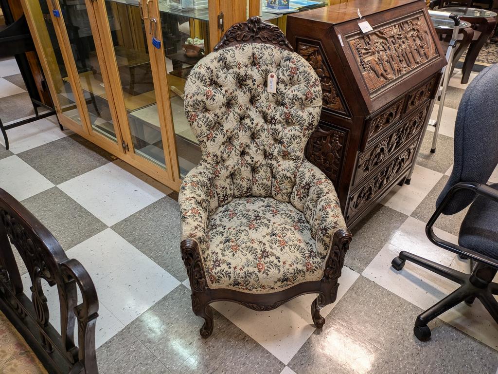 Lot 659: Victorian Mahogany Button Tuft Upholstered Armchair.