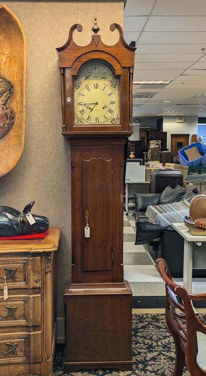 Lot 405: Mahogany Cased Grandfather Clock. Face With Floral Decoration.