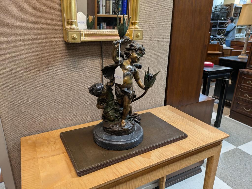 Lot 447: After Moreau, Bronze 2-Light Table Lamp. Boy With Torch. On Marble Base. 21" Tall. (Alt BP).