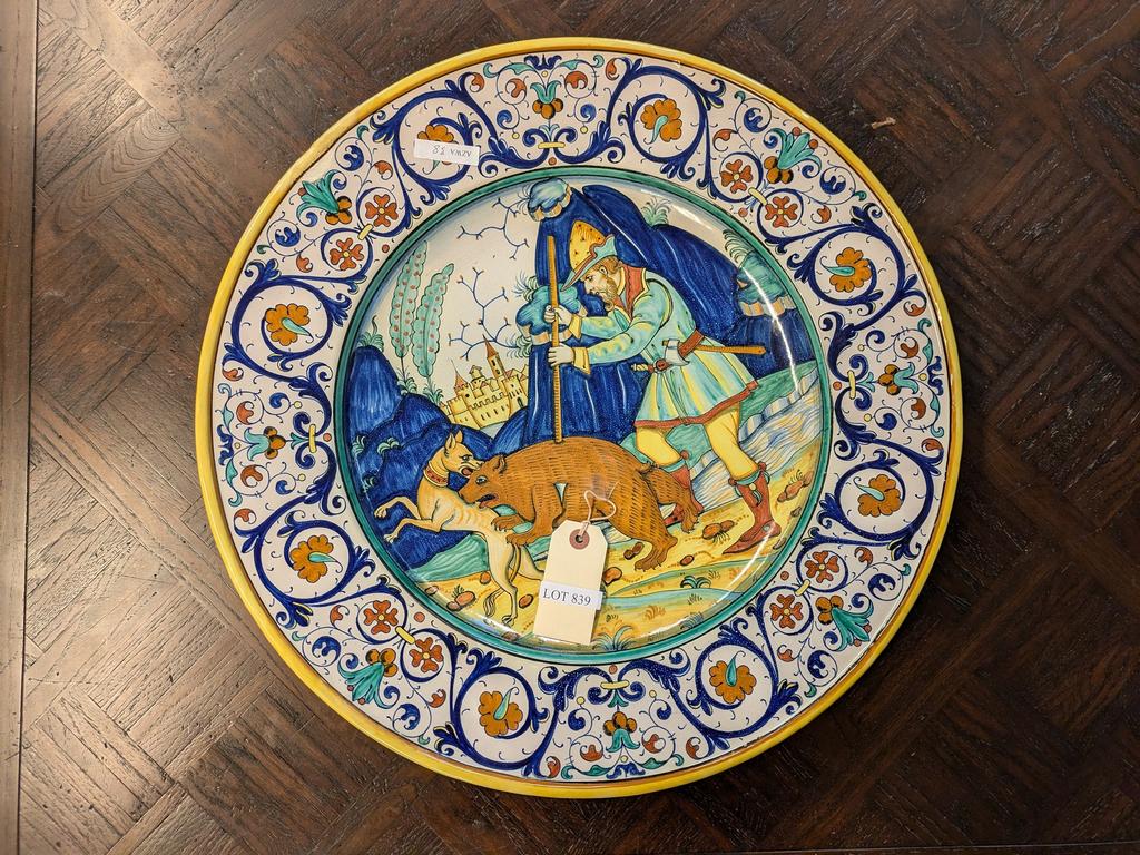 Lot 839: Hand Painted Porcelain Charger Depicting A Hunting Scene, Signed. 20" Dia.