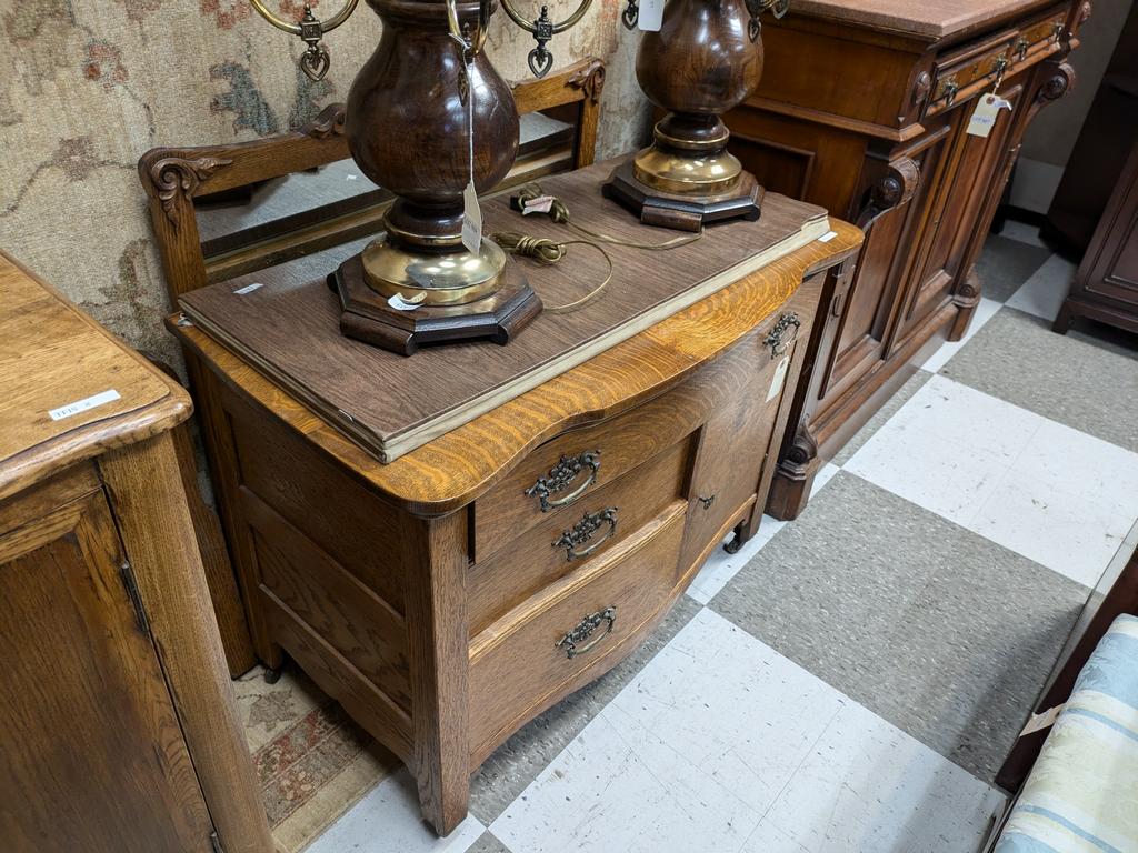 Lot 885: Oak 3-Drawer Dresser With Mirror And Single Door.