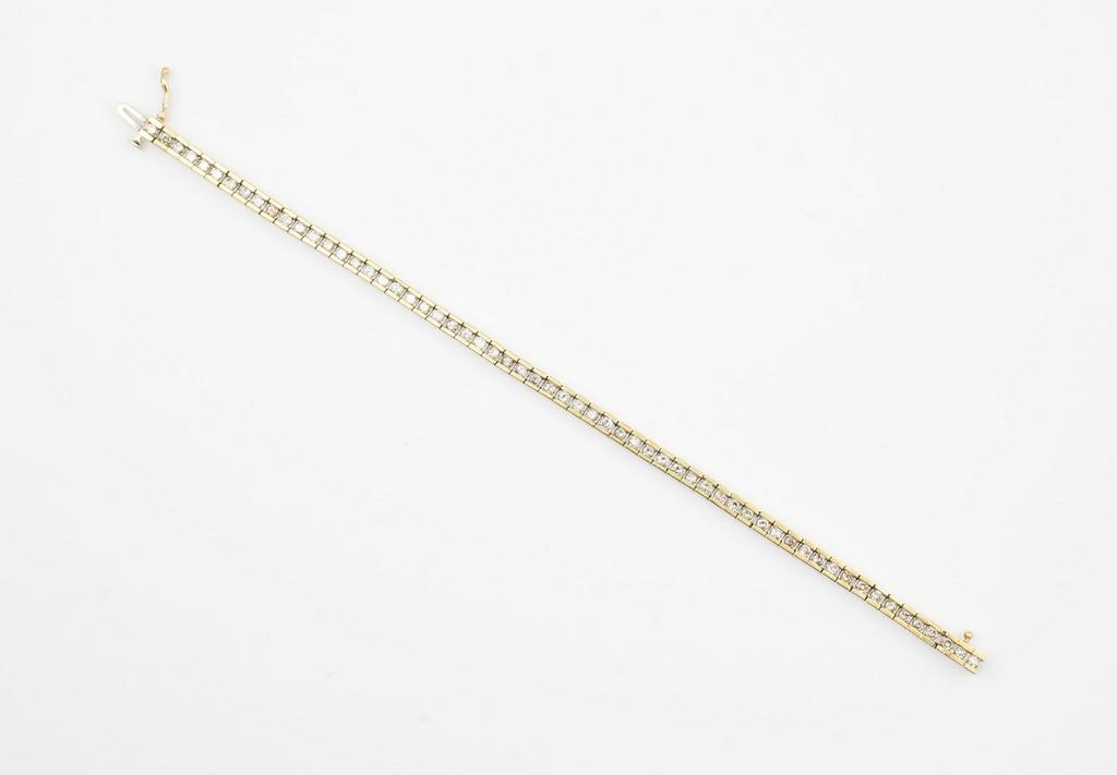 10K Gold & Diamond Tennis bracelet set with 60 round cut diamonds. Marked 10K. 7 inches long. 12.6 grams total.