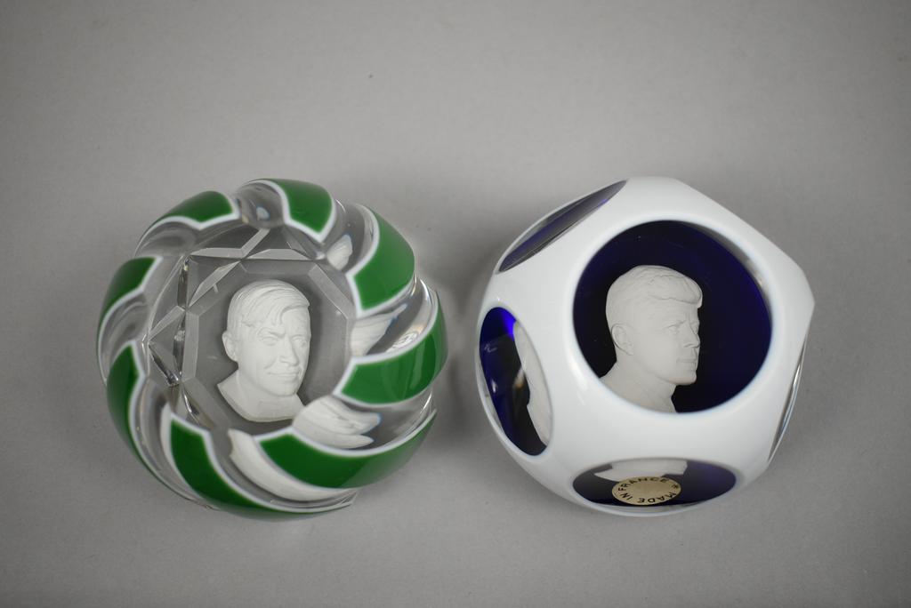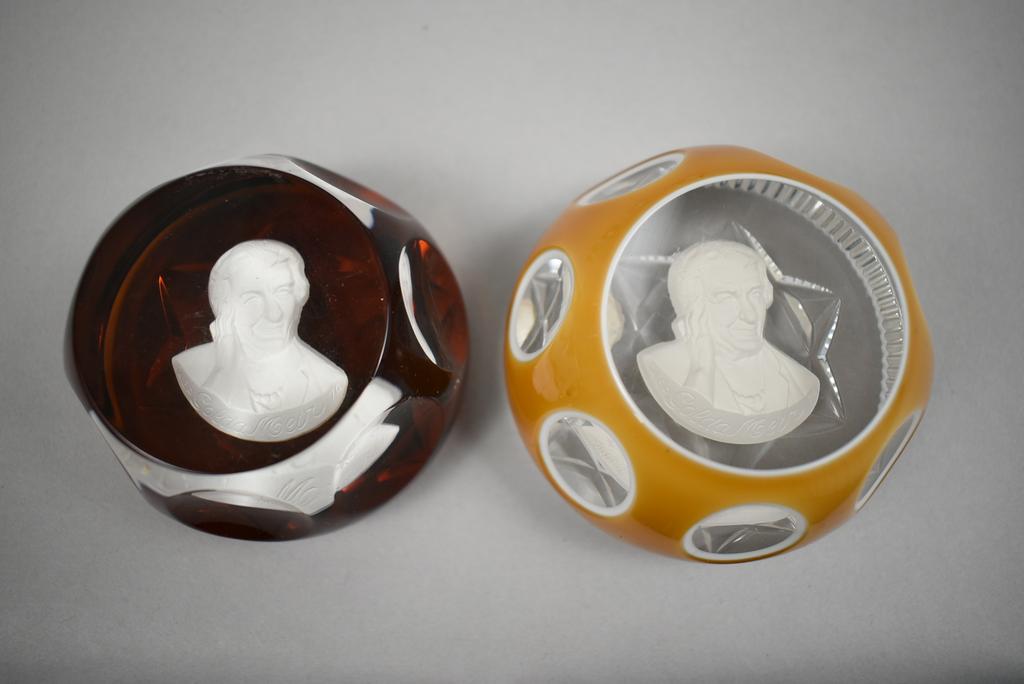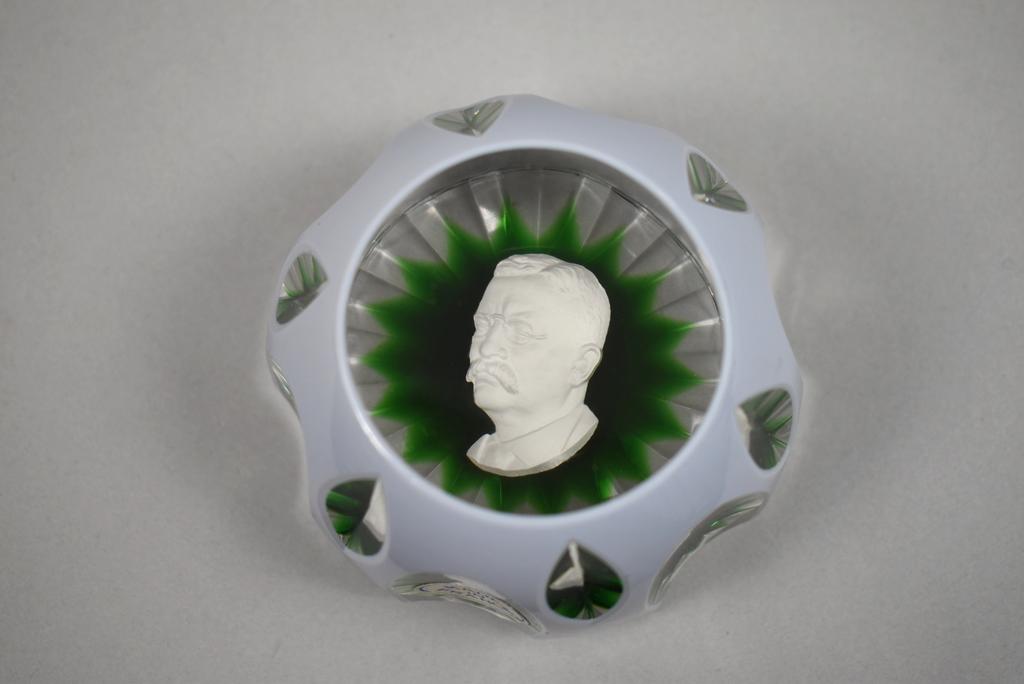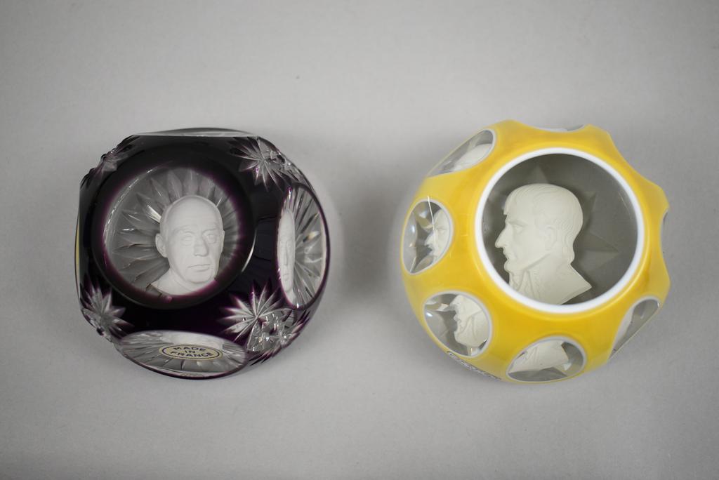 (11) Baccarat and (2) CR. Albert faceted crystal cameo paperweights. Includes Teddy Roosevelt, Eleanor Roosevelt, Thomas Paine, Will Rogers, Thomas Jefferson.