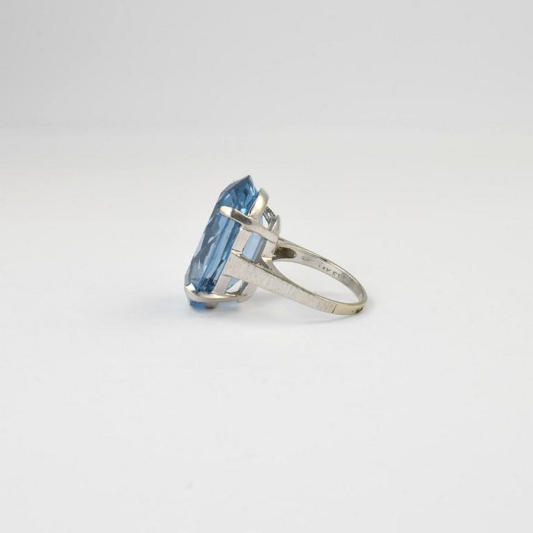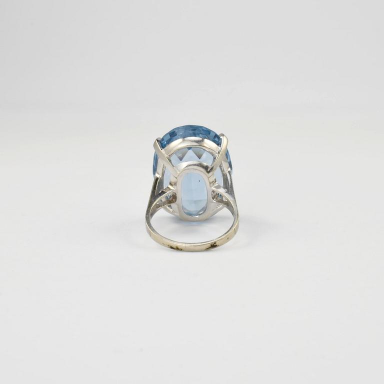 14K White Gold cocktail ring with oval step cut spinel in 4 prong set. Spinel: approx. 24.75 x 17.75 x 10 mm, purplish blue, medium tone. 13.6 grams total. Size 7.75.