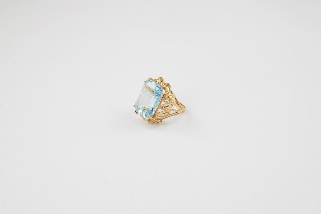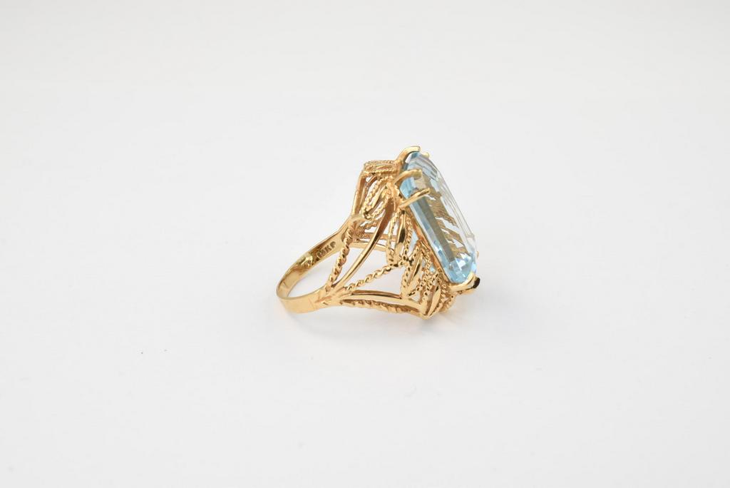 Lot 36: 14K Yellow Gold & Aquamarine Cocktail Ring.