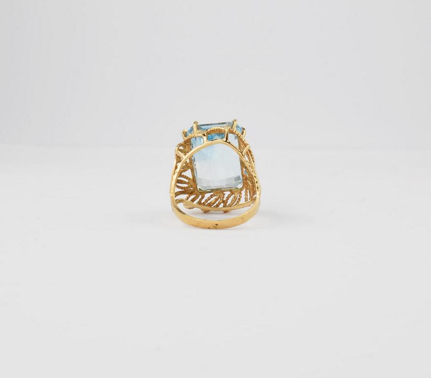 Lot 136: 14K Yellow Gold & Aquamarine Cocktail Ring.