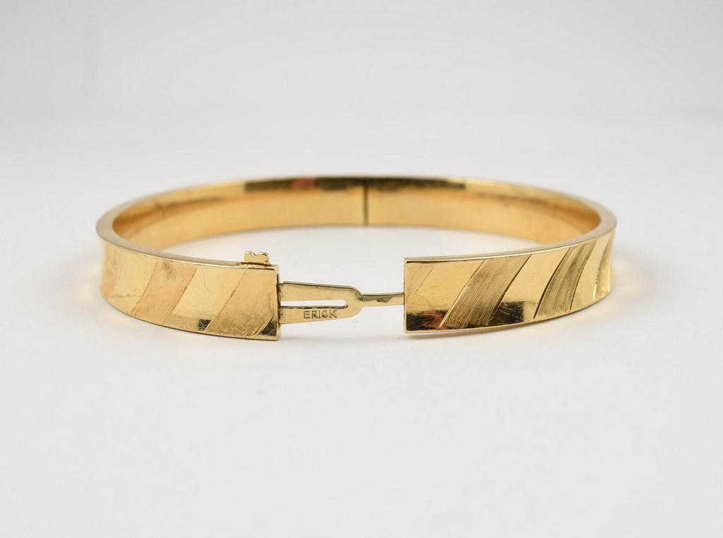 14K Yellow gold bangle bracelet (approx. 2 1/4"). Marked 14K, 11.5 grams.