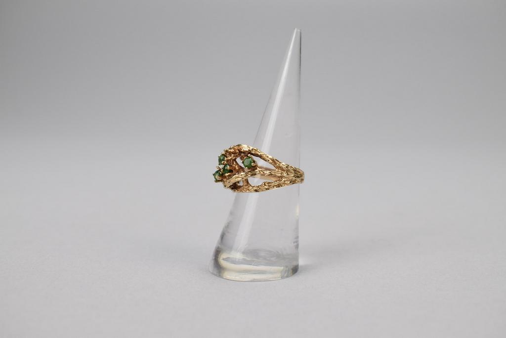 Lot 14: 14K Yellow Gold Ring with Green Stones.