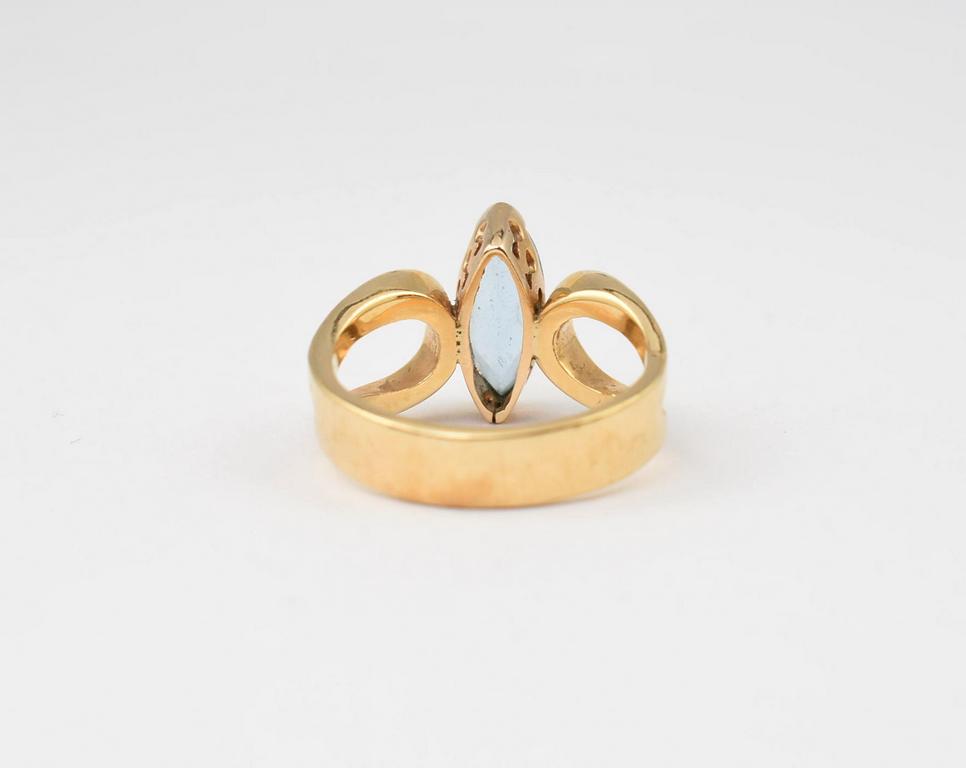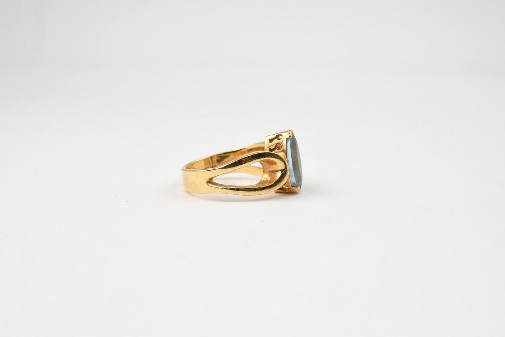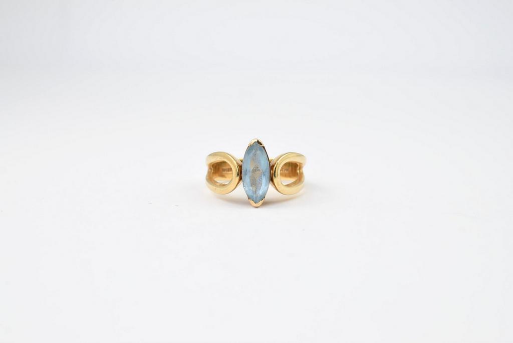 14K Yellow gold ring with marquise cut topaz. 6.9 grams, size 8.
