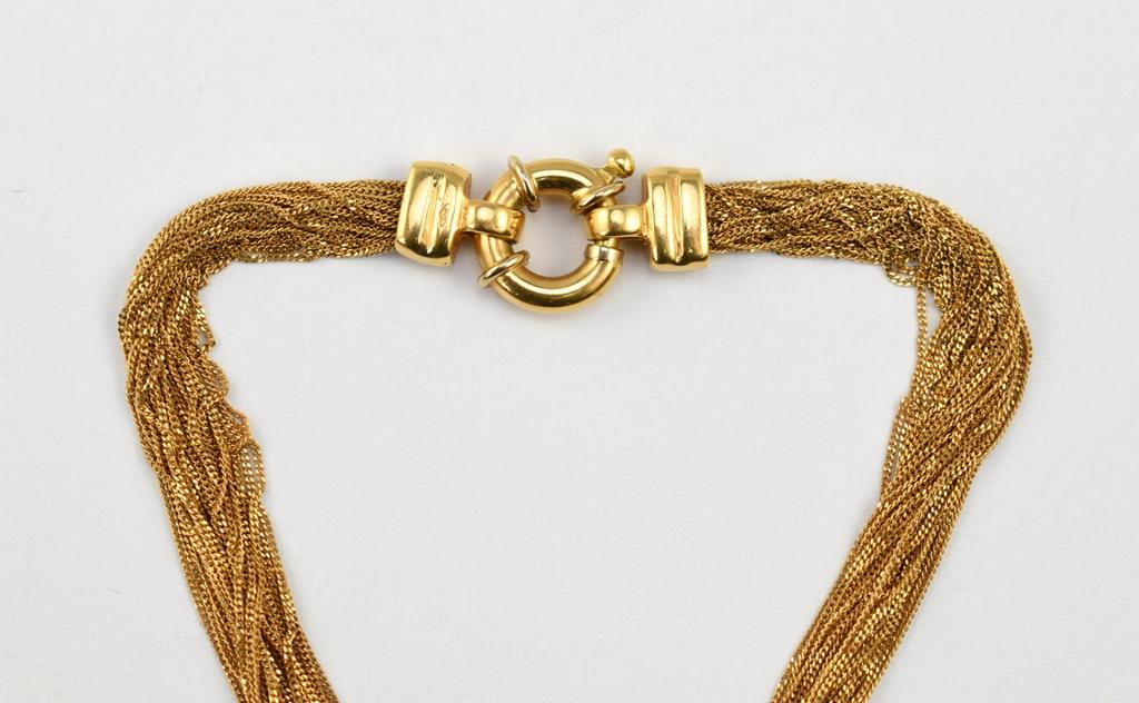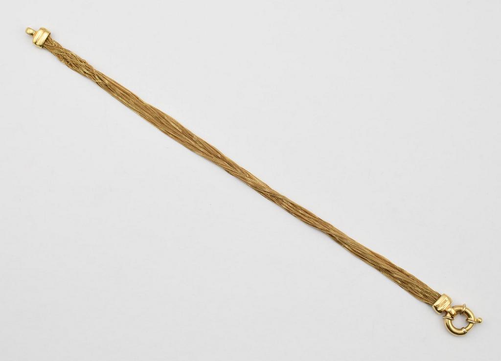 18K Italy yellow multi-strand bracelet. Marked 750 and with Vicenza province mark. 10.1 grams, 7" long.