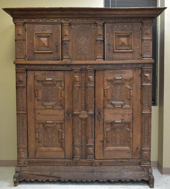 Lot 377: 18th C. Flemish Renaissance Style Oak Cabinet.