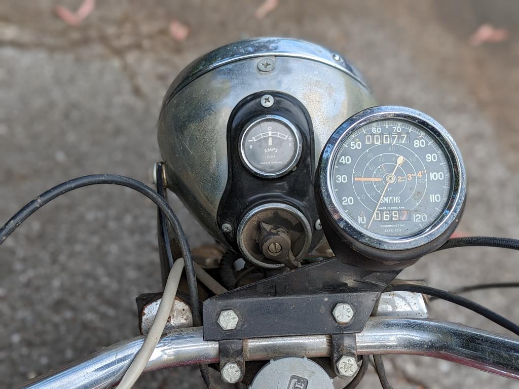 1958 Triumph T-110 Motorcycle. VIN: 017228, License: 16U8332 (California), Odometer reading: 00077.
